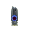 This lure was made by KEGZ.Ā He is the grandson of Joe Yee and every lure is made in the same workshop, using the same materials and molds as the originals. This particular lure is a black/graphite color pearl with a custom hand-made blue/dark red resin eye.
