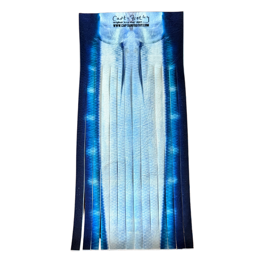 Frothy “A La Vive” Vinyl - Imported from Madeira Portugal, the patterns resemble your typical bait fish and the inside is hand-painted so that no space on the skirt is wasted for color options.