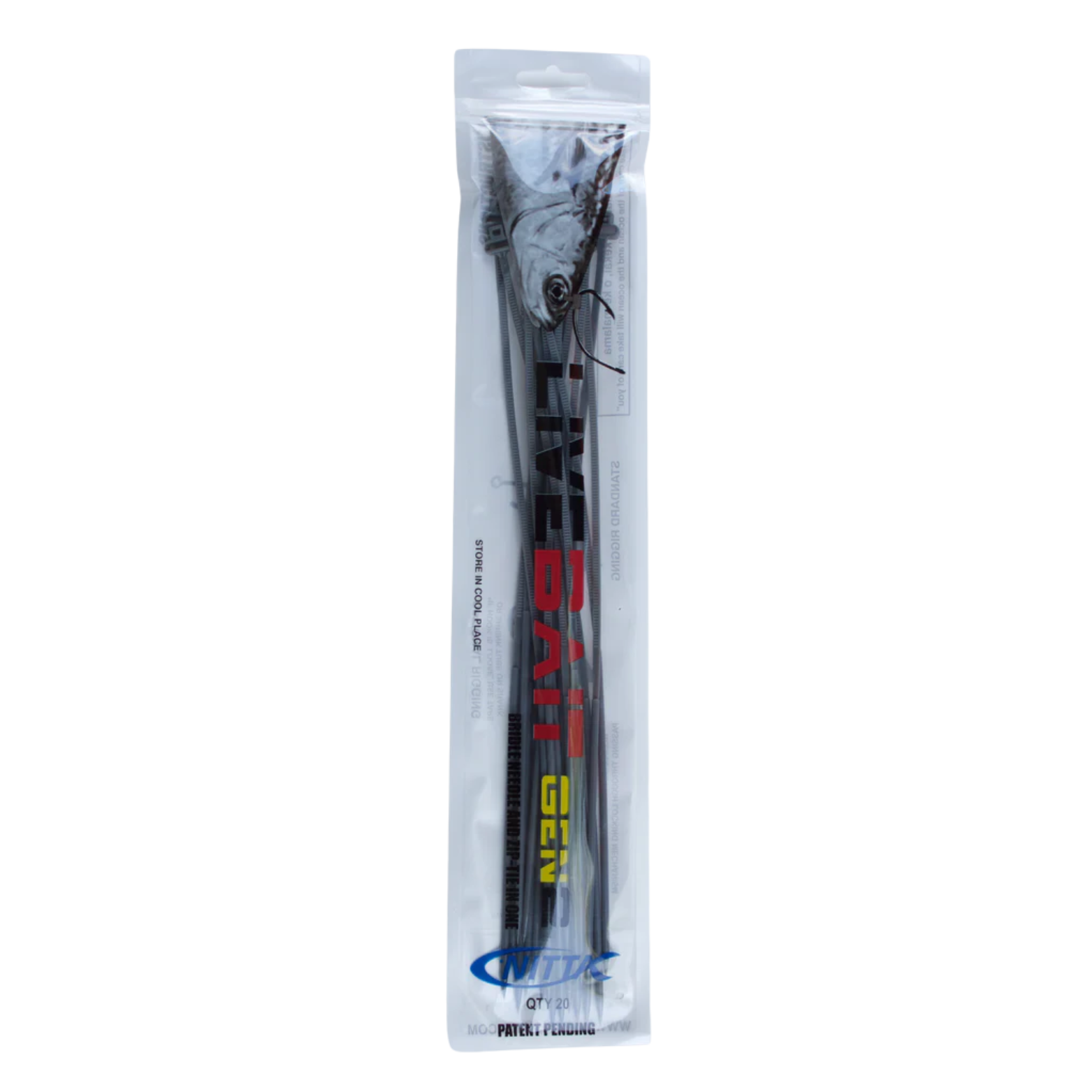 LIVE ZIPS GEN 2: The Live Bait Zip Ties Gen 2 are a new and improved version of the original bridle needle, zip tie and hook harness in one! Now with a longer and stronger needle and reinforced harness, the LIVE BAIT ZIPS are sure to keep your hook in striking position at all times while helping to keep your bait alive longer. No more rusty needles and string needed in your rigging kit!